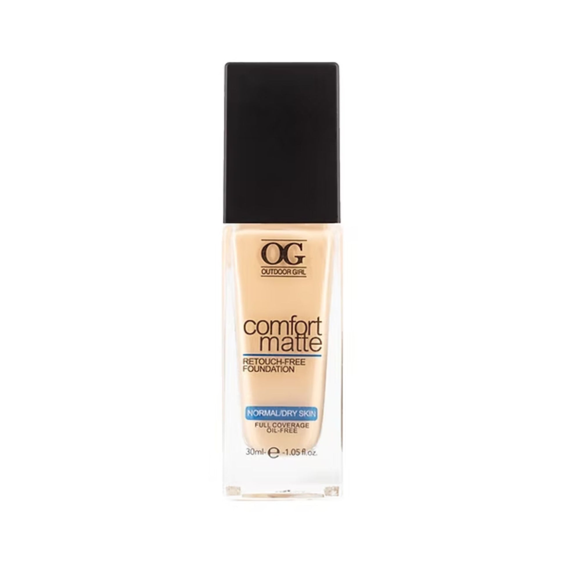 La Base Líquida Comfort Matte by OG ofrece una cobertura total con un acabado natural y mate, ideal para pieles normales a secas, aunque con un toque seco y confortable. Su fórmula oil free proporciona una sensación ligera y duradera, adaptándose al movimiento de la piel sin marcar líneas de expresión.