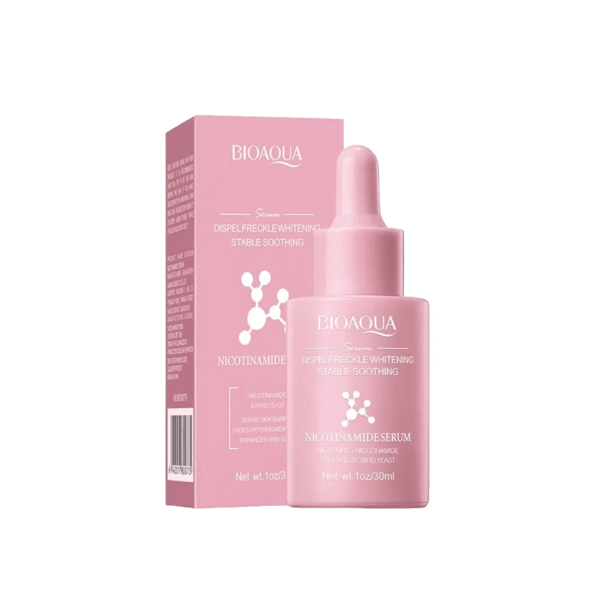 El Sérum Facial Nicotinamide by Bioaqua es un tratamiento concentrado que combina nicotinamida (vitamina B3) y levadura bífida para reparar la barrera cutánea, reducir manchas oscuras y mejorar la luminosidad natural de la piel. Su textura ligera se absorbe rápidamente, dejando la piel fresca, hidratada y radiante.